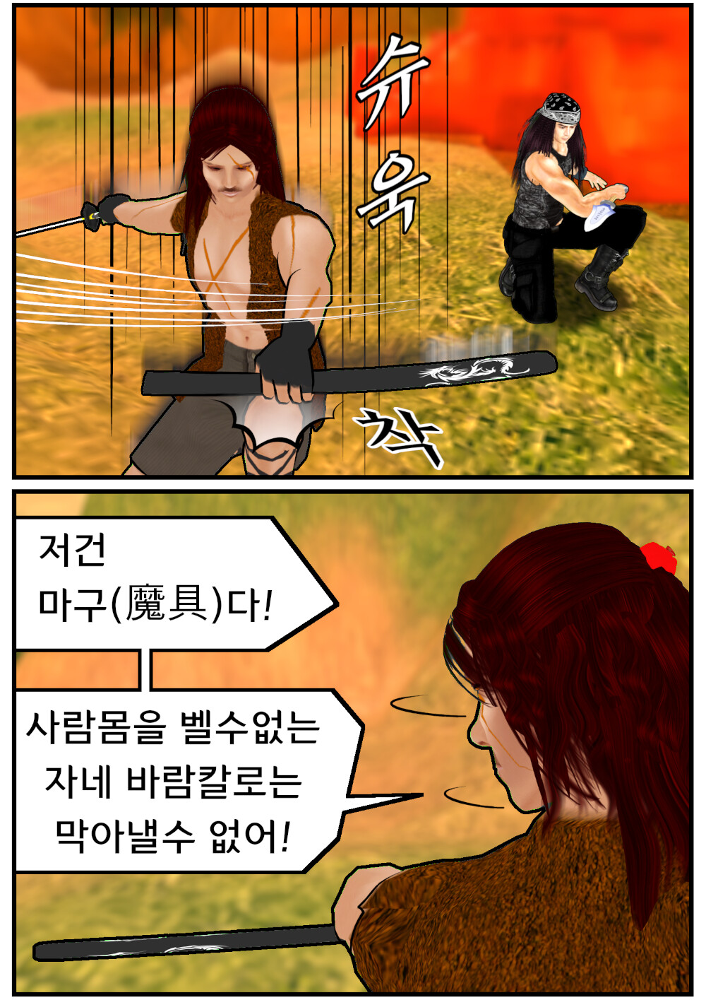 악령을 소환해 퇴치 하려는 흑룡검.